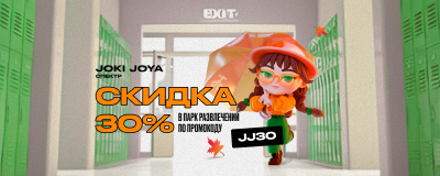 -30% на покупку входных билетов по промокоду JJ30 на сайте и в приложении Joki Joya!